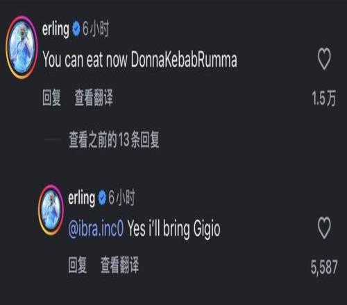 在这张照片中,哈兰德也出现在一旁,但他并没有错过调侃队友的机会。哈兰德在评论区幽默写道:“现在可以放心去吃烤肉了。”